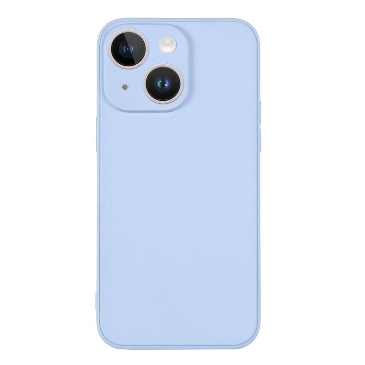 For iPhone 15 Silicone Phone Case with Wrist Strap(Light Blue)