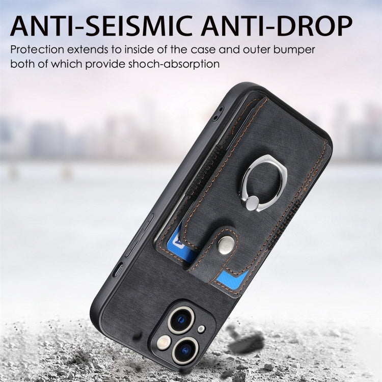 For iPhone 15 Retro Skin-feel Ring Card Wallet Phone Case(Black)