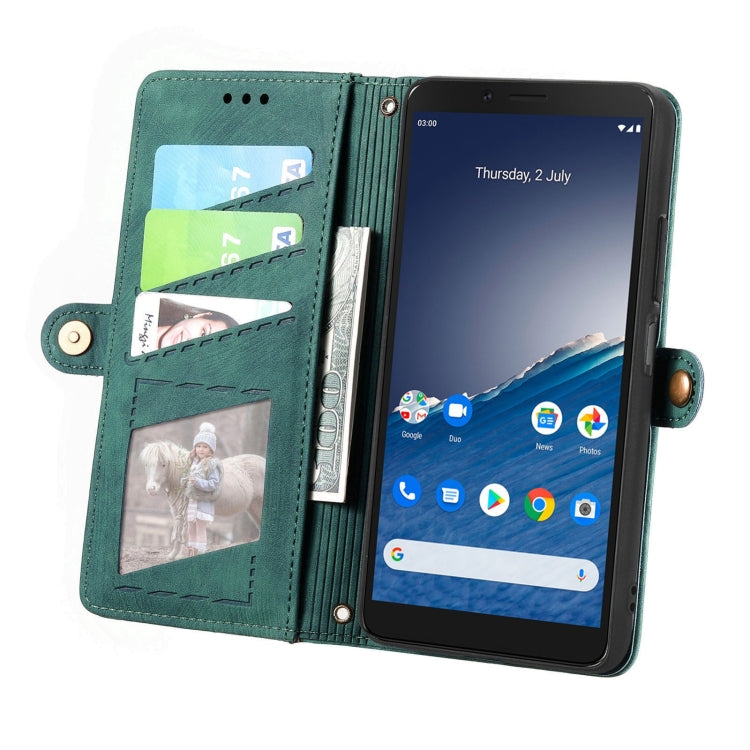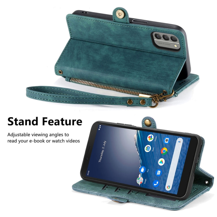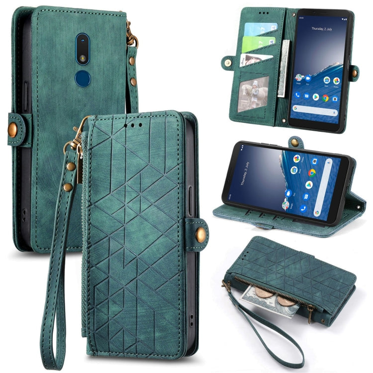 For Nokia C3 Geometric Zipper Wallet Side Buckle Leather Phone Case(Green)