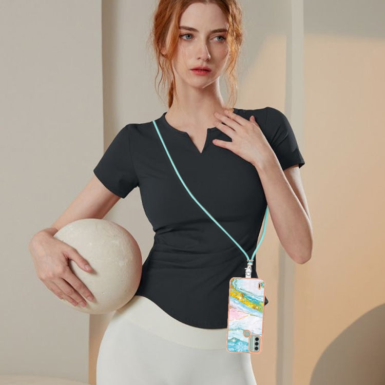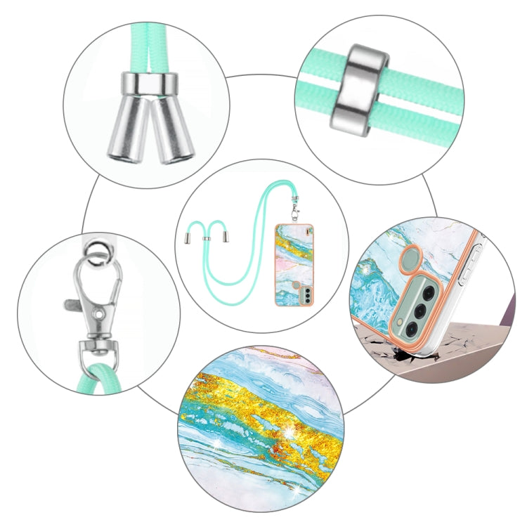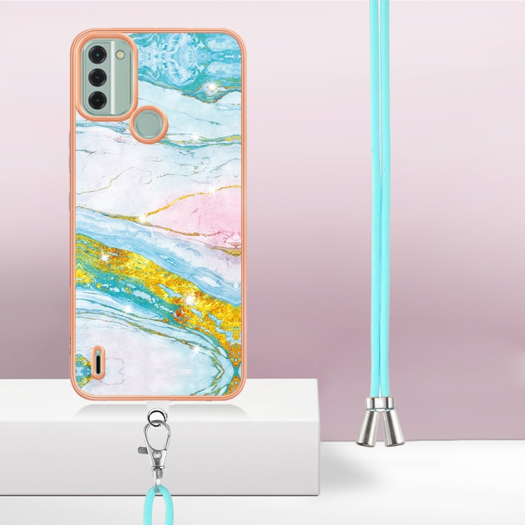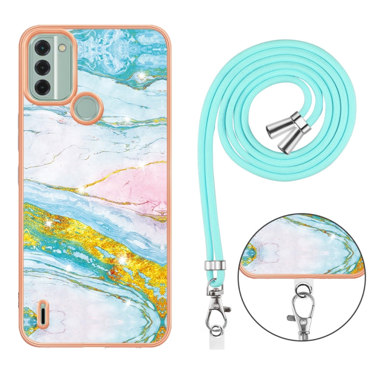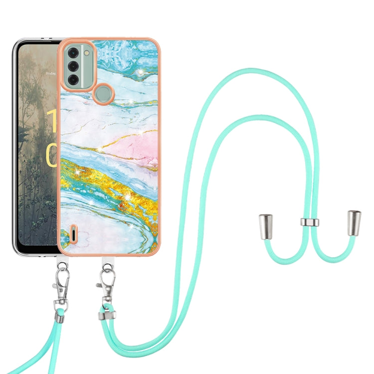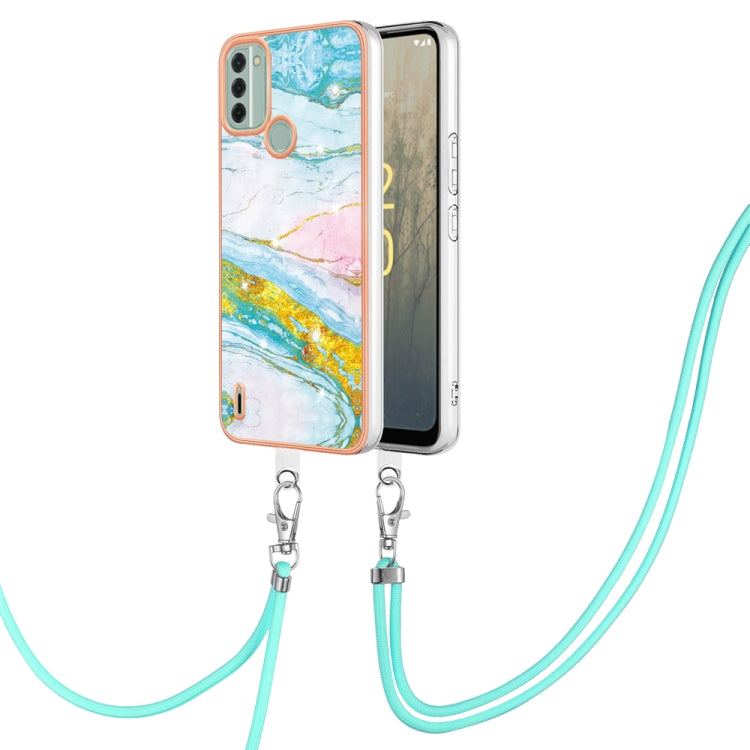 For Nokia C31 Electroplating Marble Dual-side IMD Phone Case with Lanyard(Green 004)