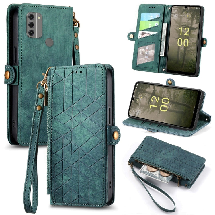 For Nokia C31 Geometric Zipper Wallet Side Buckle Leather Phone Case(Green)