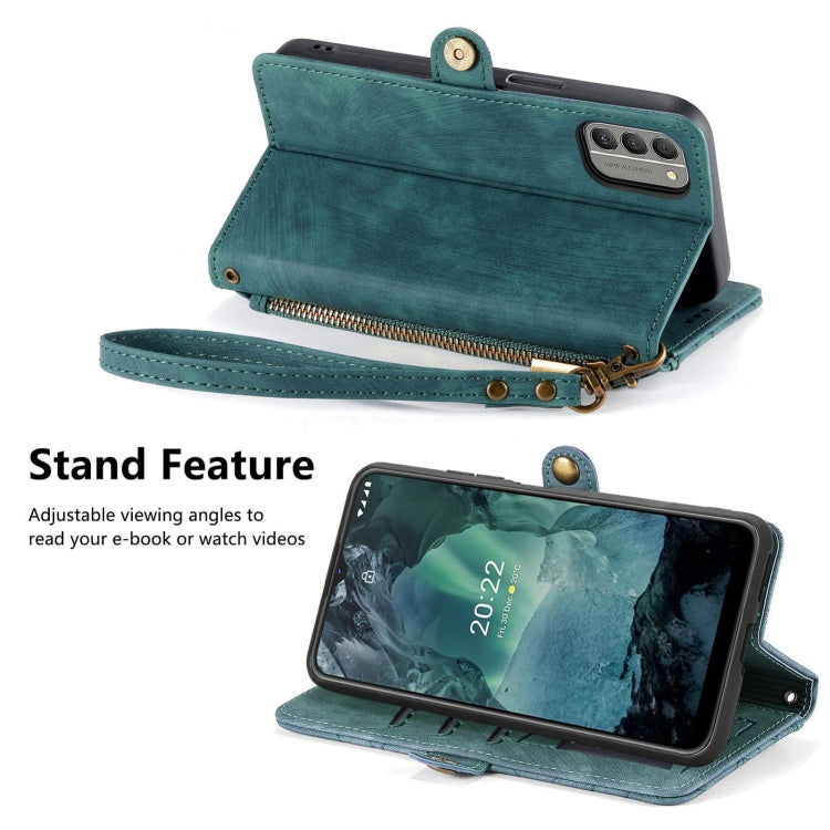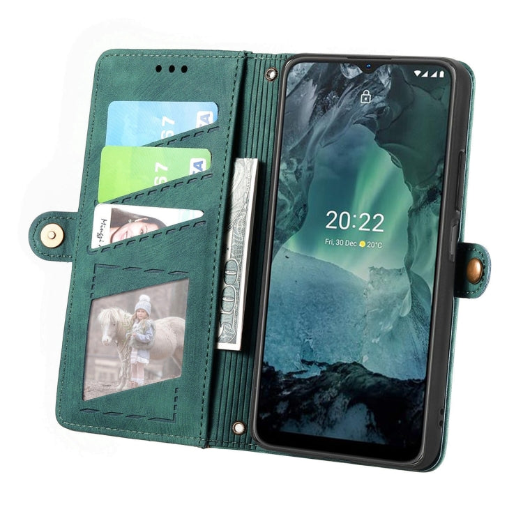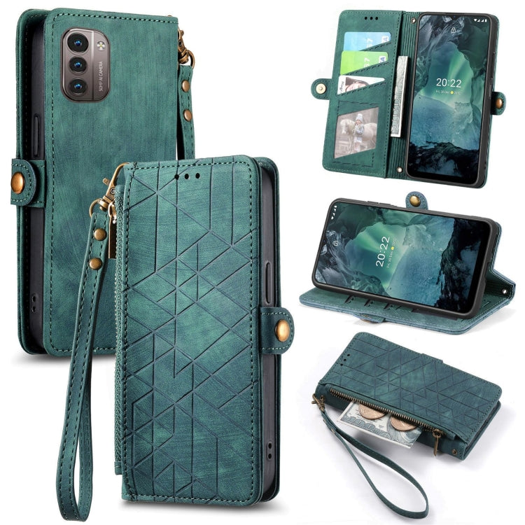 For Nokia G11/G21 Geometric Zipper Wallet Side Buckle Leather Phone Case(Green)