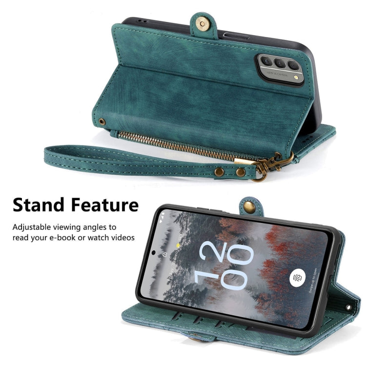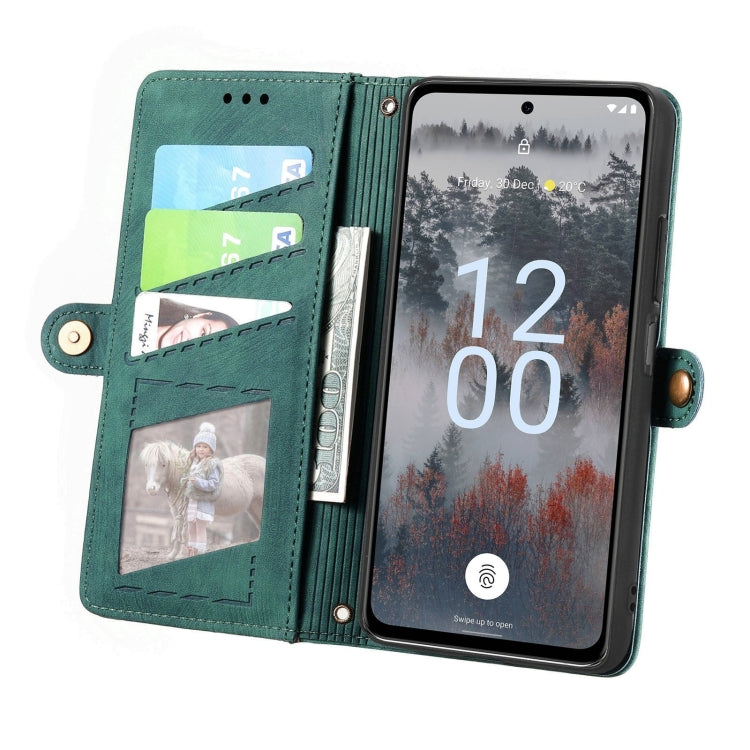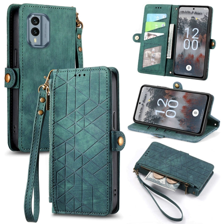For Nokia X30 5G Geometric Zipper Wallet Side Buckle Leather Phone Case(Green)
