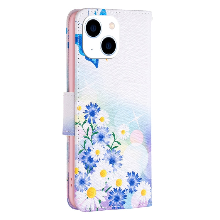 For iPhone 15 Colored Drawing Pattern Leather Phone Case(Butterfly Love)
