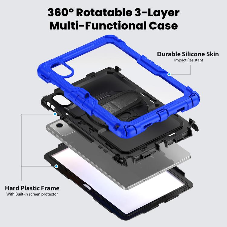 For Lenovo Xiaoxin Pad 2024 / 2025 Silicone Hybrid PC Tablet Case with Shoulder Strap(Dark Blue Black)