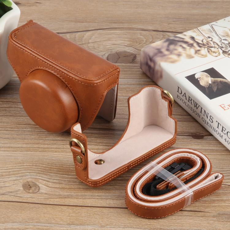 For Sony ZV-1F Vlog Camera Full Body Leather Camera Case Bag with Strap (Brown)