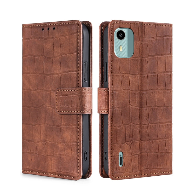 For Nokia C12 Skin Feel Crocodile Magnetic Clasp Leather Phone Case(Brown)
