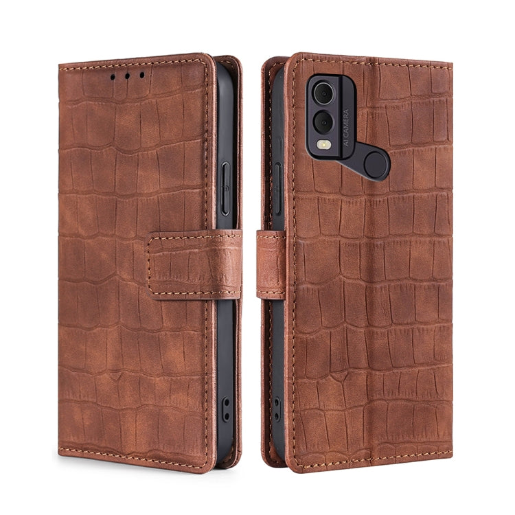 For Nokia C22 Skin Feel Crocodile Magnetic Clasp Leather Phone Case(Brown)