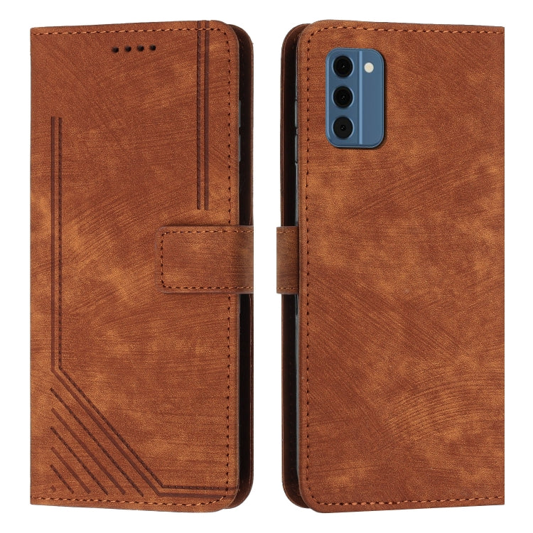 For Nokia C300 Skin Feel Stripe Pattern Leather Phone Case with Lanyard(Brown)