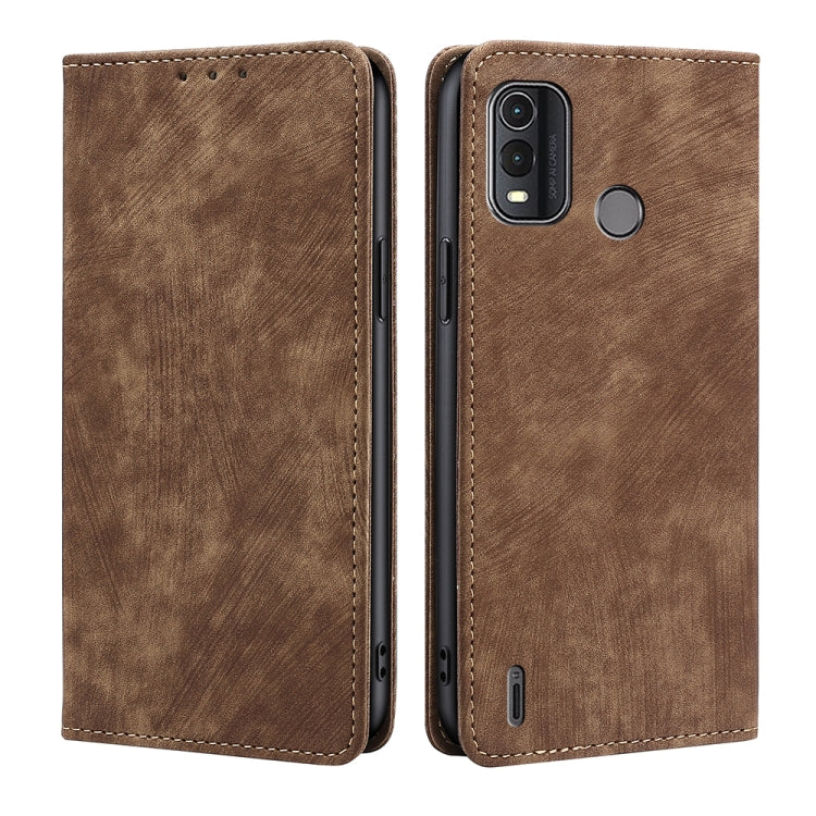 For Nokia G11 Plus RFID Anti-theft Brush Magnetic Leather Phone Case(Brown)