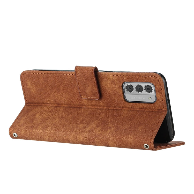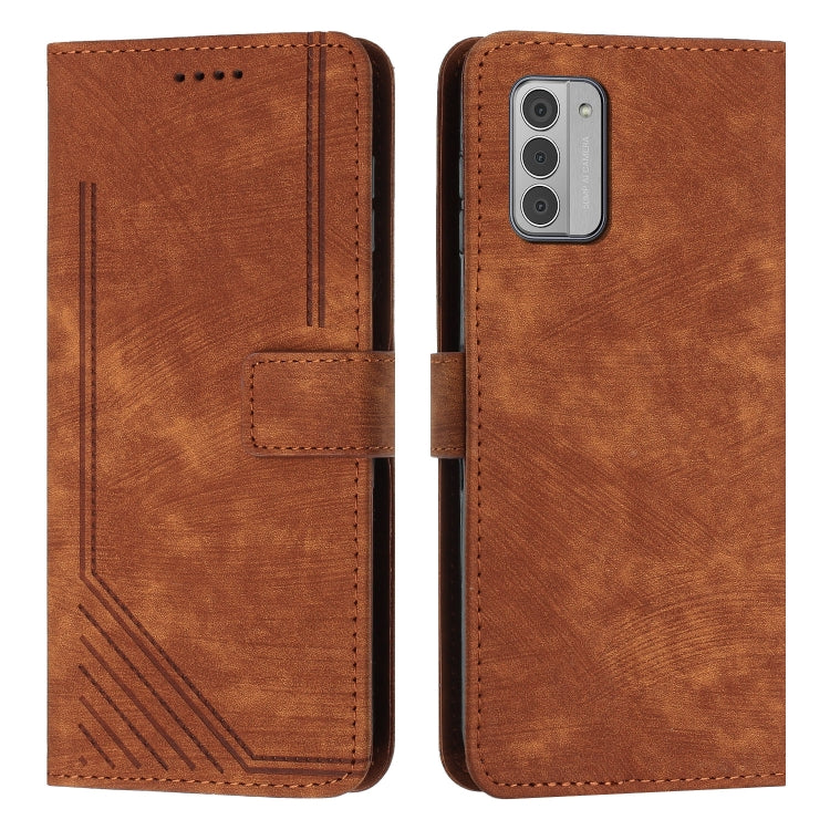 For Nokia G42 Skin Feel Stripe Pattern Leather Phone Case with Lanyard(Brown)