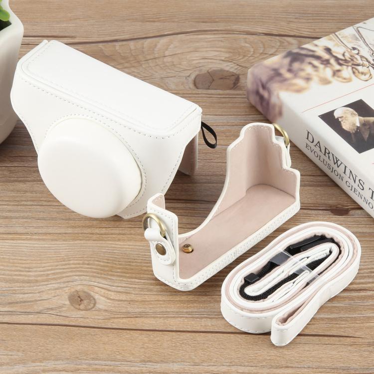 For Sony ZV-1F Vlog Camera Full Body Leather Camera Case Bag with Strap (White)