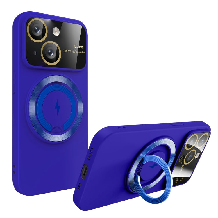 For iPhone 15 Large Window MagSafe Magnetic Holder Phone Case(Klein Blue)