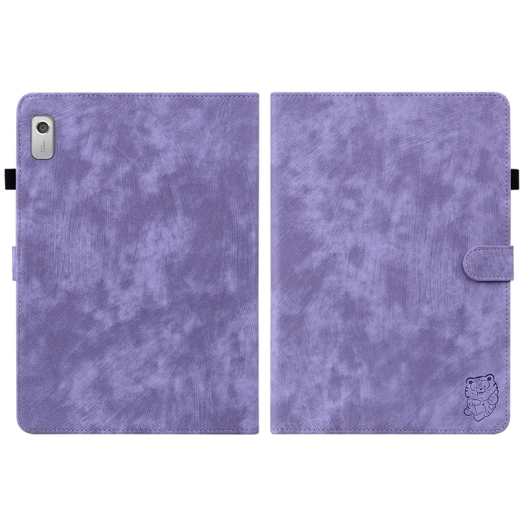 For Lenovo Tab M9 Tiger Pattern Flip Leather Tablet Case(Purple)