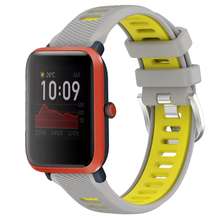 For Amazfit Bip3 20mm Cross Texture Two Color Silicone Steel Buckle Watch Band(Grey+Yellow)