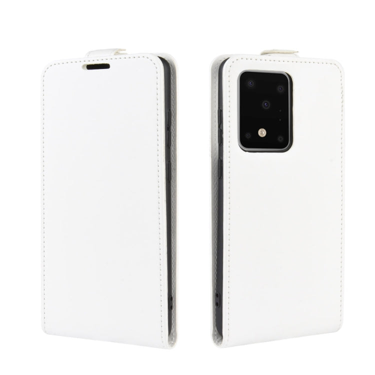 For Galaxy S20 Ultra R64 Texture Single Vertical Flip Leather Protective Case with Card Slots & Photo Frame(White)