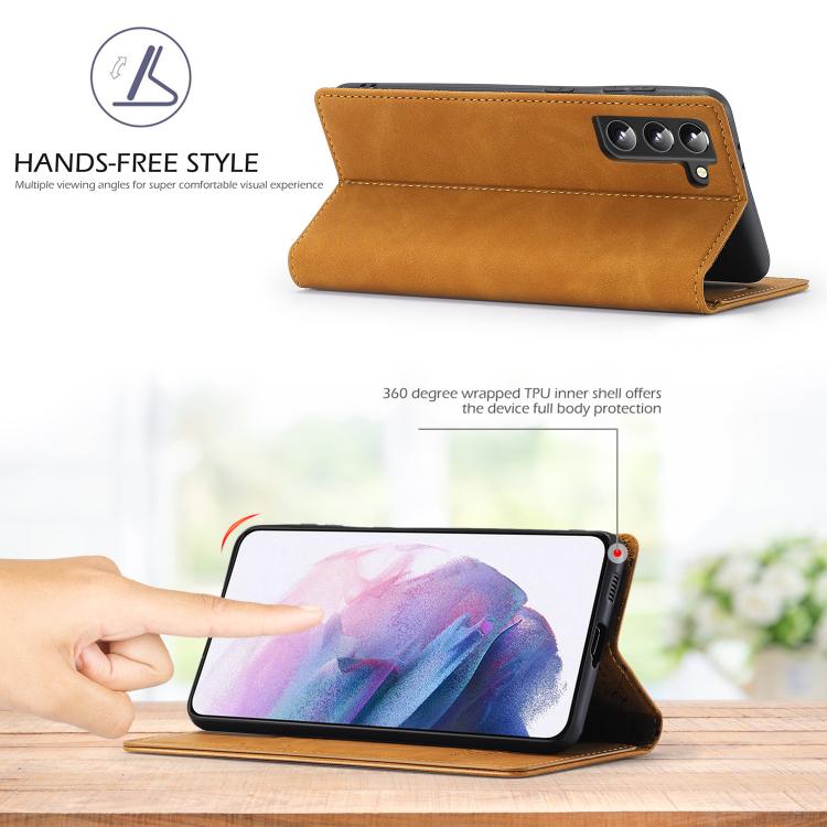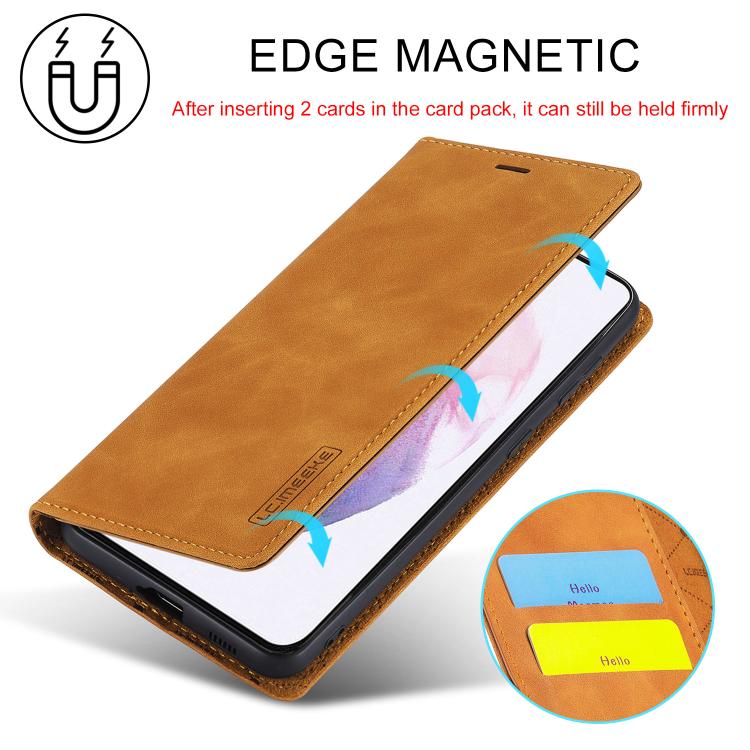 For Samsung Galaxy S22+ 5G LC.IMEEKE Soft PU + TPU Magnetic Skin-friendly Feeling Leather Phone Case(Dack Brown)