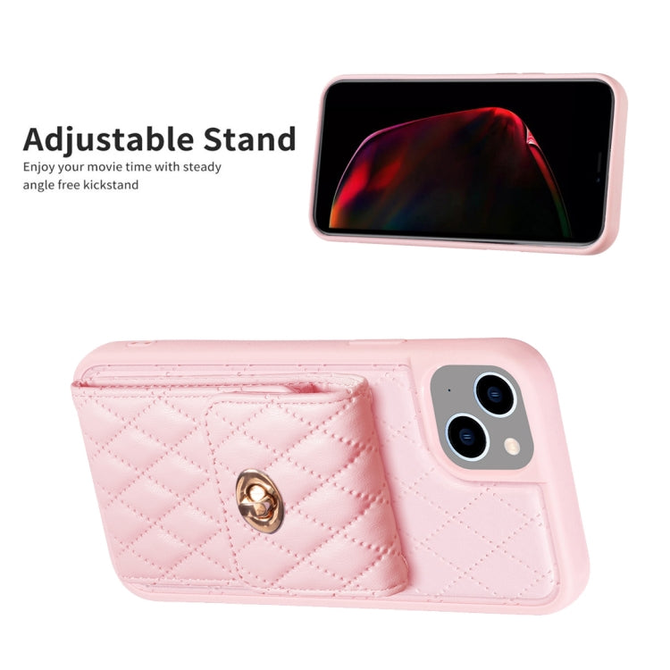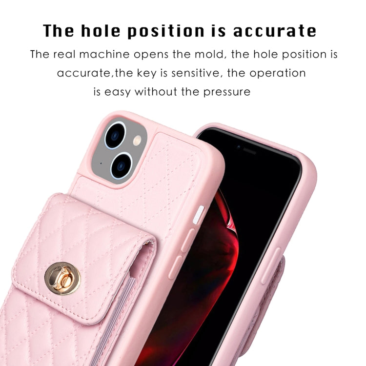For iPhone 15 Vertical Wallet Rhombic Leather Phone Case(Pink)