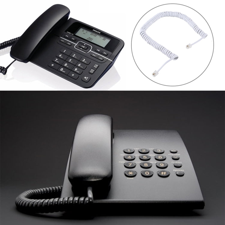 4 Core Male to Male RJ11 Spring Style Telephone Extension Coil Cable Cord Cable, Stretch Length: 3m(White)