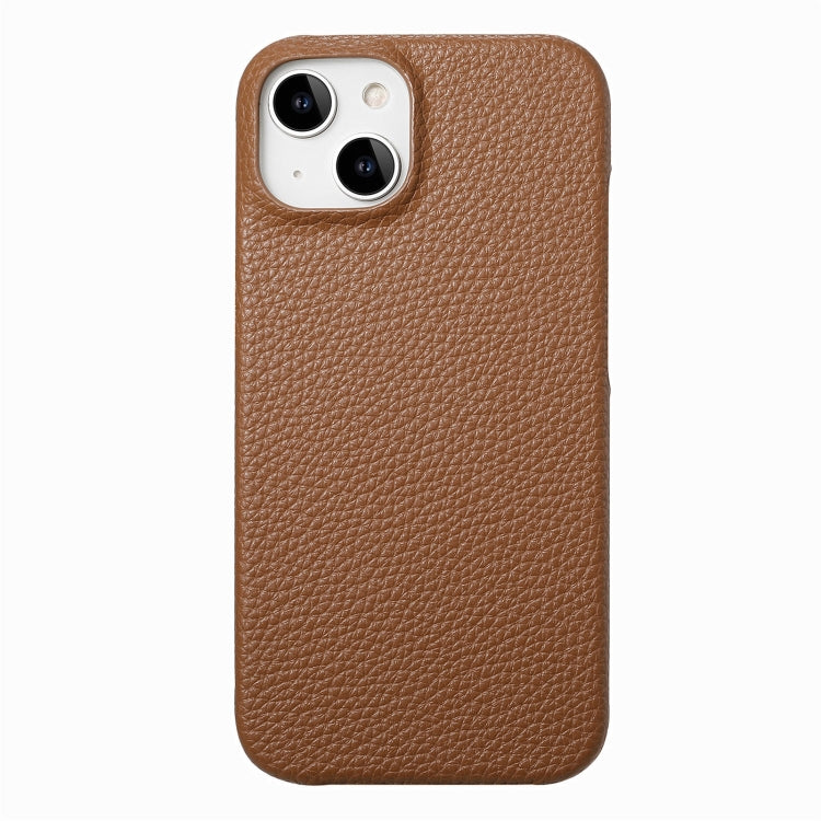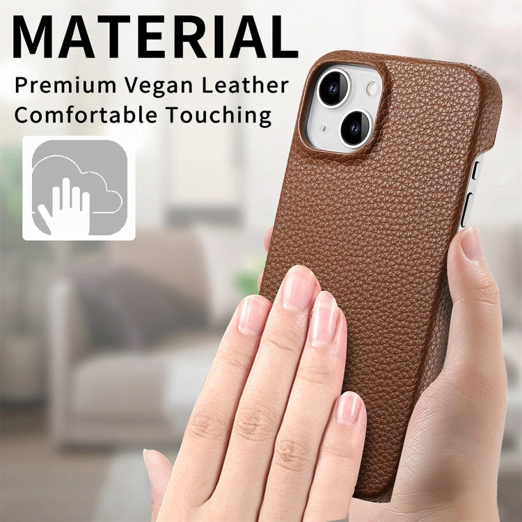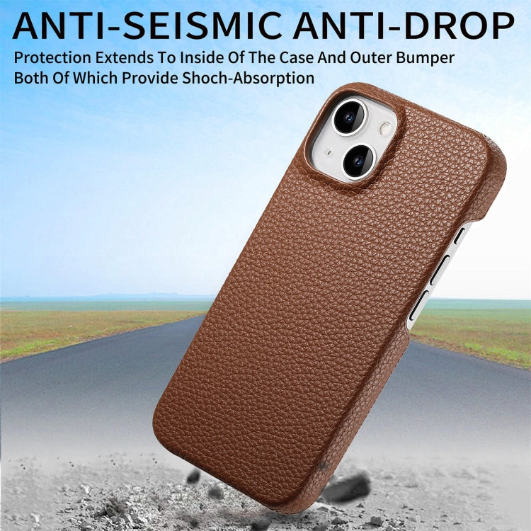 For iPhone 15 Litchi Oil Edge Leather Back Phone Case(Brown)