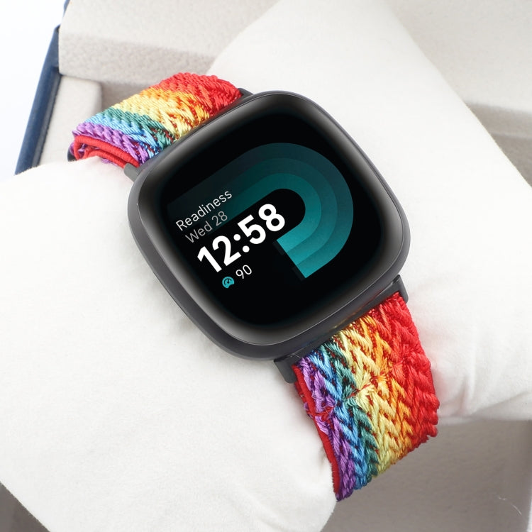 For Fitbit Versa 4 / Sense 2 Universal Wave Nylon Watch Band(Rainbow)