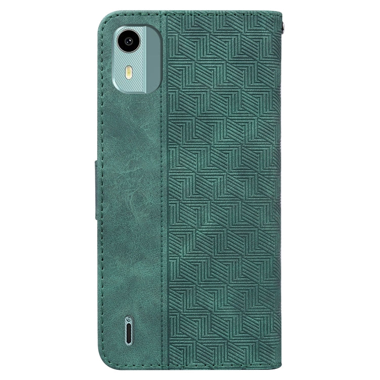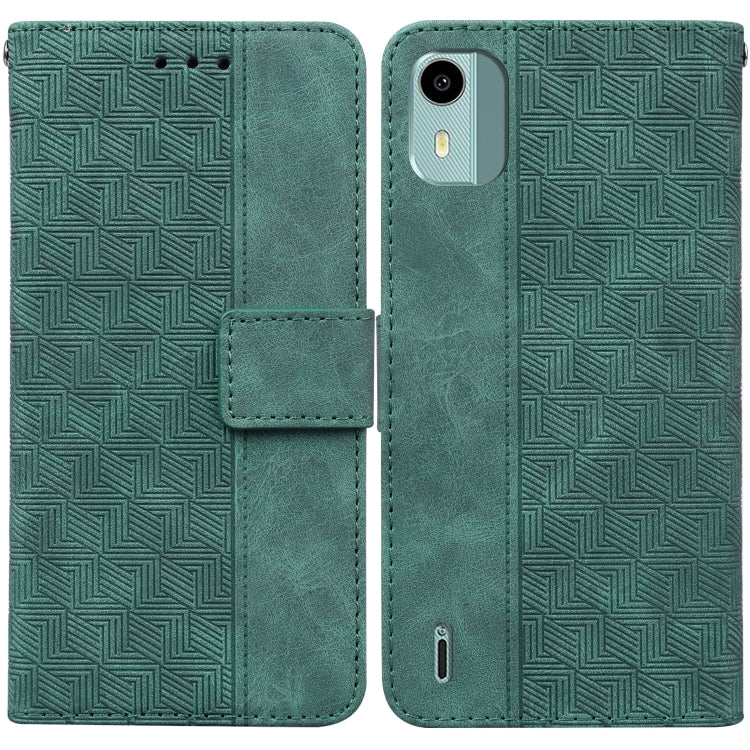 For Nokia C12 Geometric Embossed Leather Phone Case(Green)