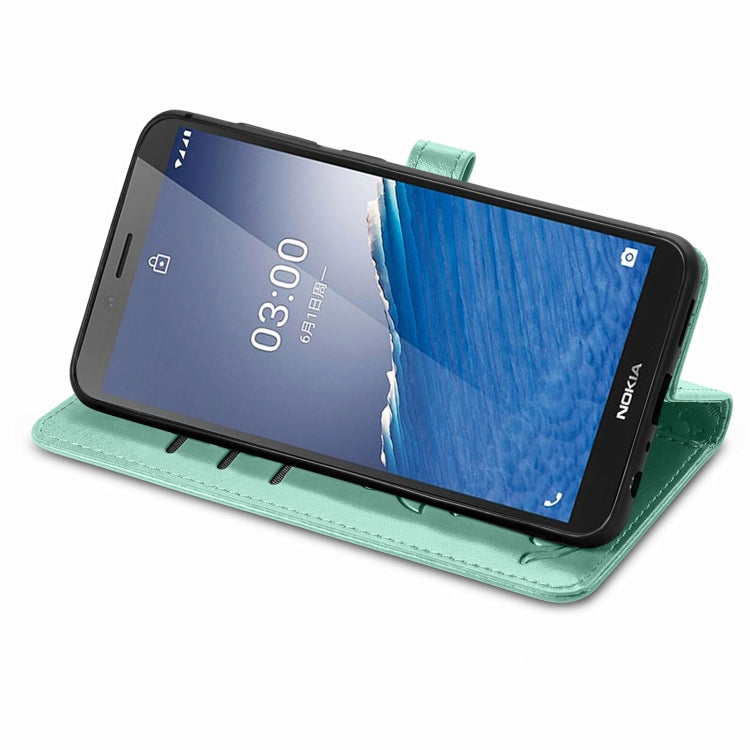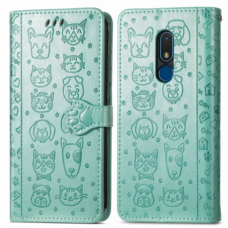 For Nokia C3 Cute Cat and Dog Embossed Flip Leather Phone Case(Green)