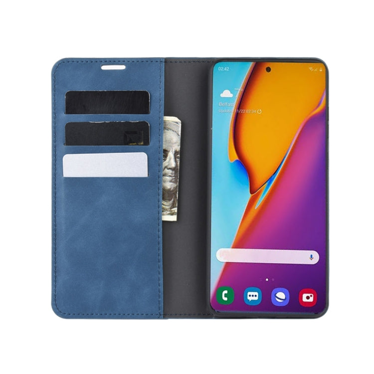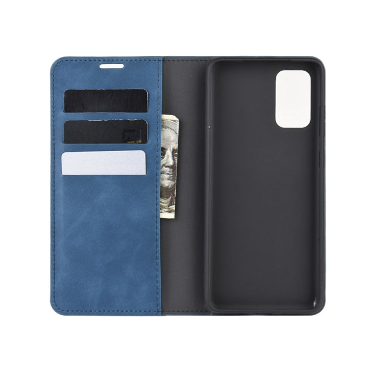 For Galaxy S20+ Retro-skin Business Magnetic Suction Leather Case with Holder & Card Slots & Wallet(Dark Blue)