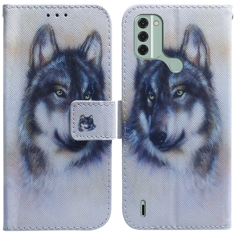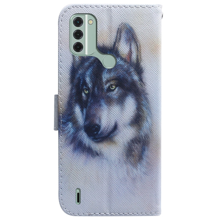 For Nokia C31 Coloured Drawing Flip Leather Phone Case(White Wolf)