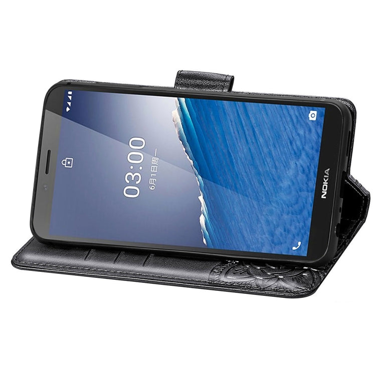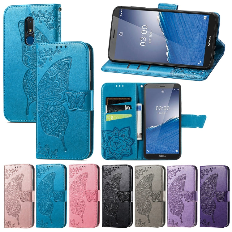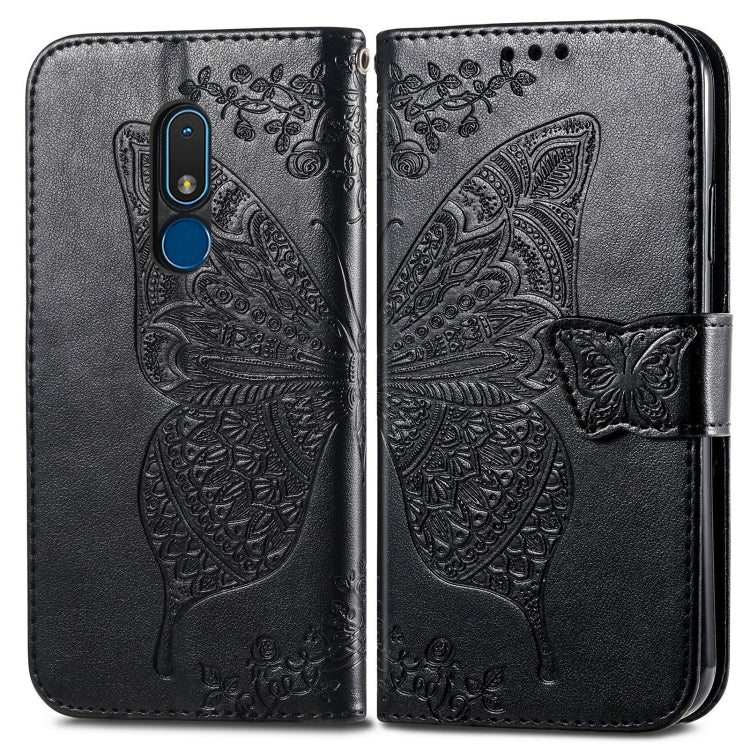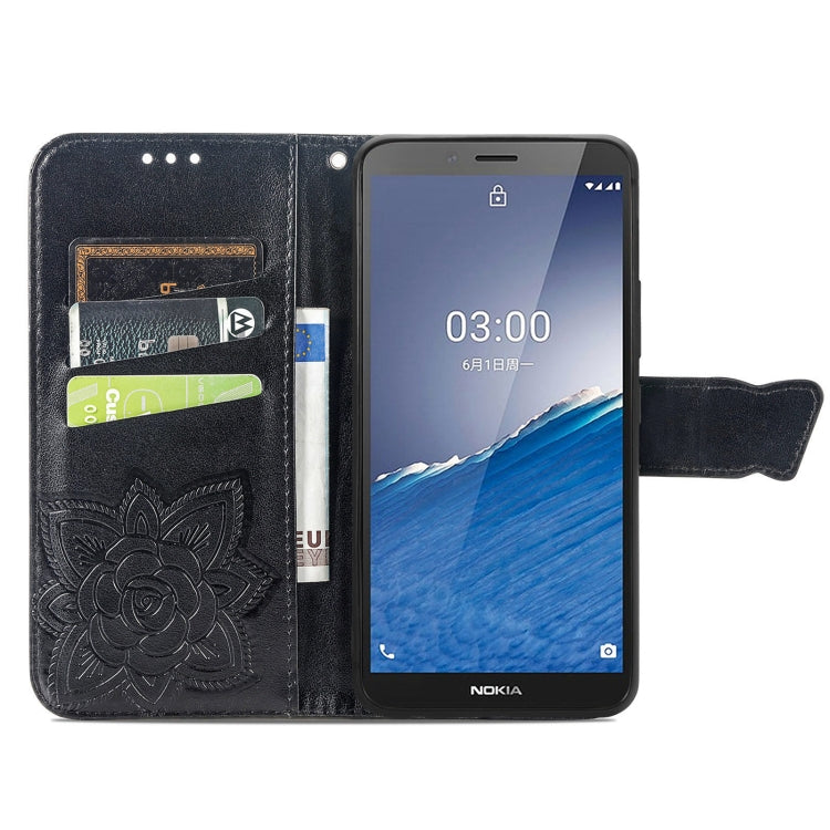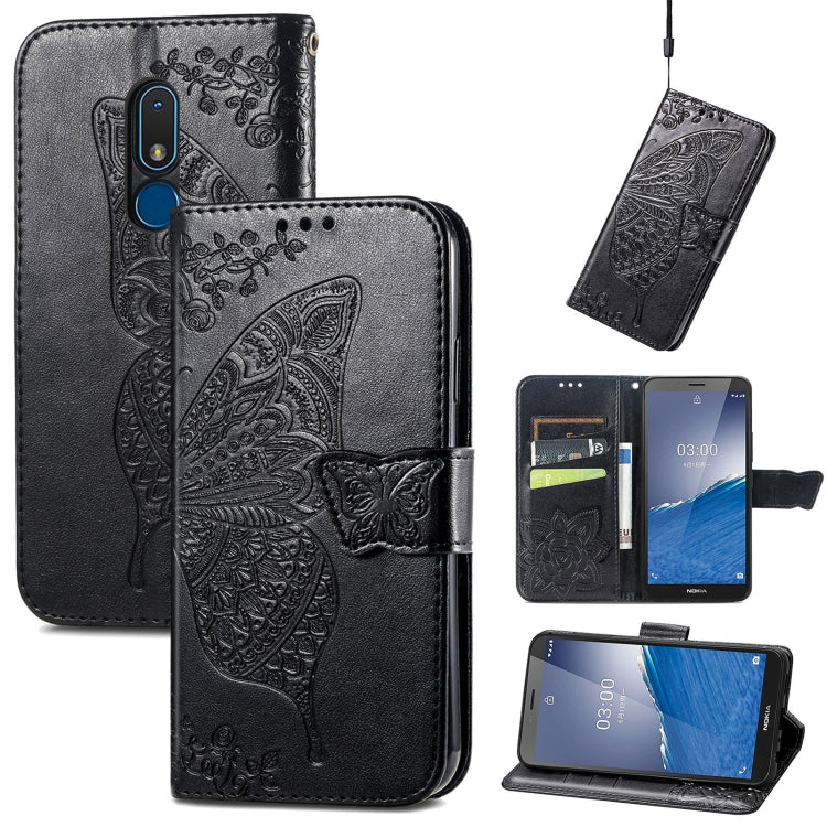 For Nokia C3 Butterfly Love Flower Embossed Leather Phone Case(Black)