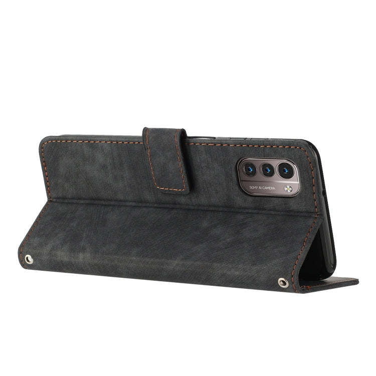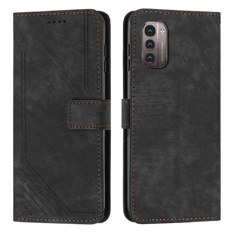 For Nokia G11/G21 Skin Feel Stripe Pattern Leather Phone Case with Lanyard(Black)