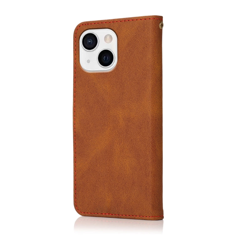 For iPhone 15 Dual-color Stitching Leather Phone Case(Brown Red)