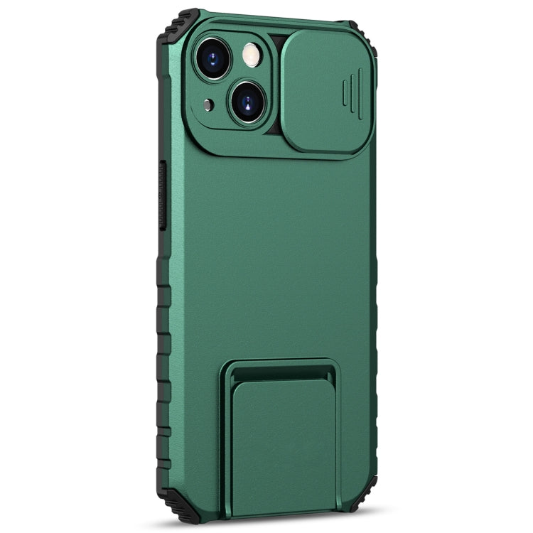 For iPhone 15 Stereoscopic Holder Sliding Camshield Phone Case(Green)