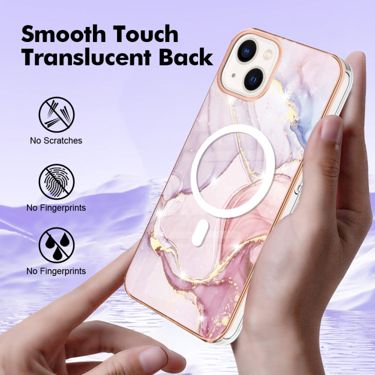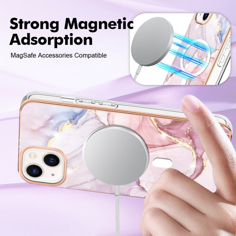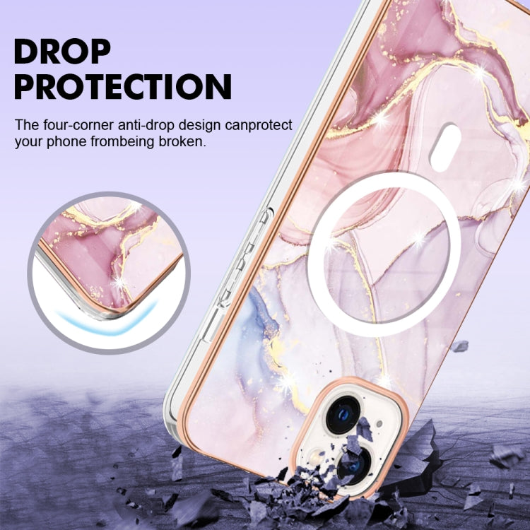 For iPhone 15 Marble Pattern Dual-side IMD Magsafe TPU Phone Case(Rose Gold 005)