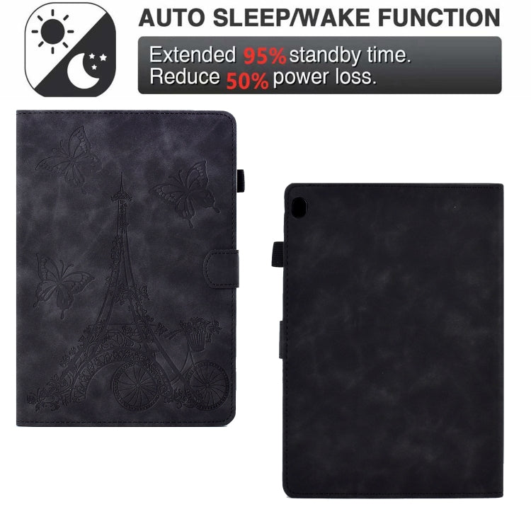 For Lenovo M10 Tower Embossed Leather Smart Tablet Case(Black)