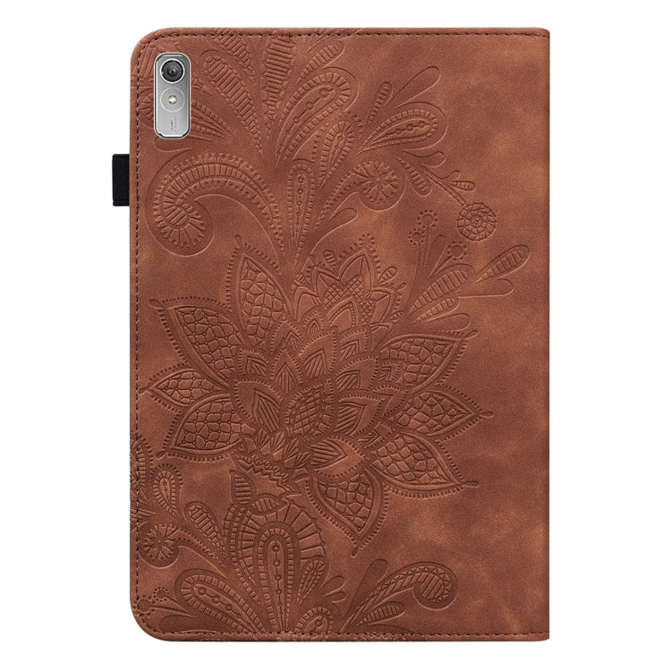 For Lenovo Pad Plus 2023 11.5 inch / Tab P11 Gen 2 Lace Flower Embossing Pattern Leather Tablet Case(Brown)