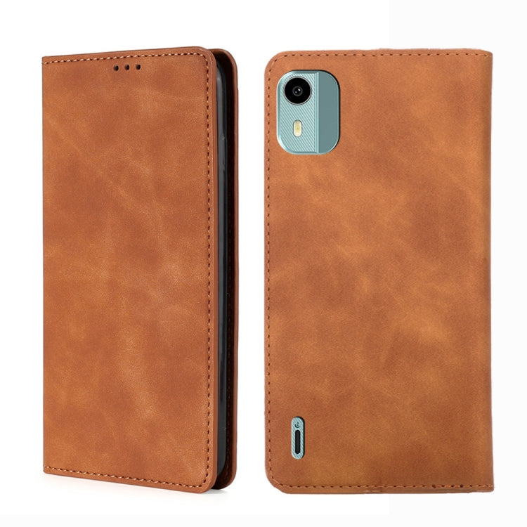 For Nokia C12 Skin Feel Magnetic Leather Phone Case(Light Brown)