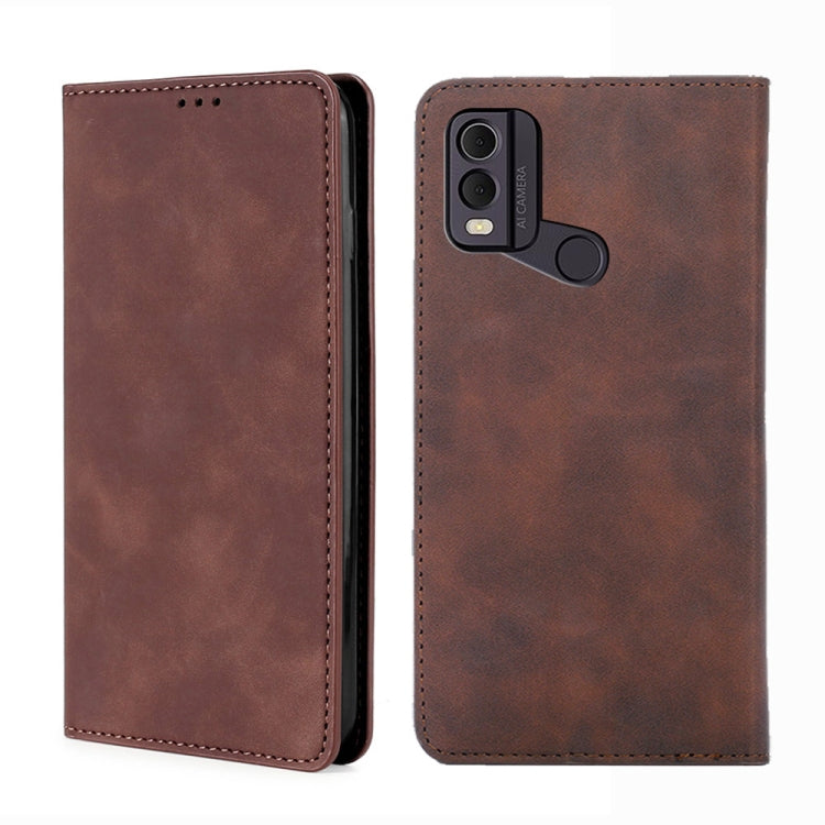 For Nokia C22 Skin Feel Magnetic Leather Phone Case(Dark Brown)