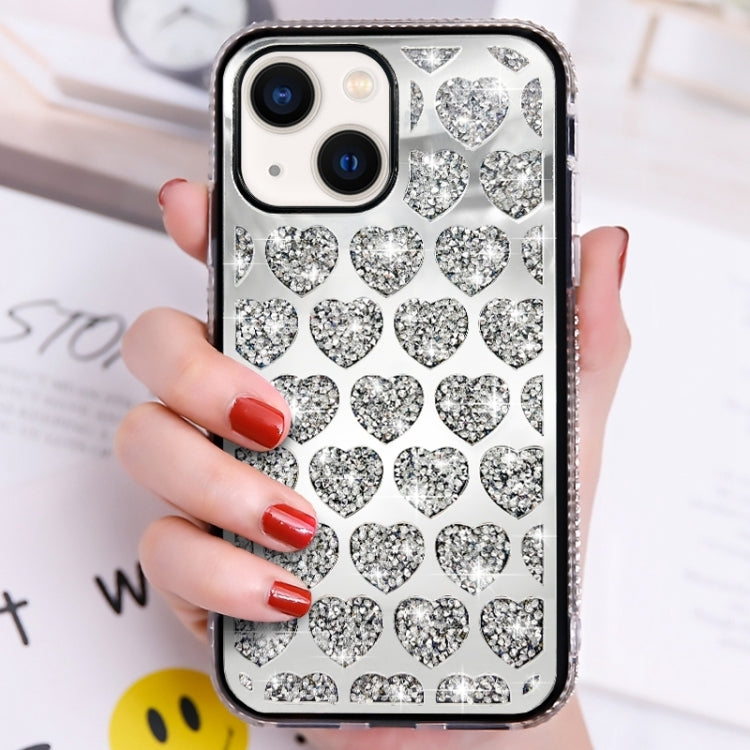 For iPhone 15 Love Hearts Diamond Mirror TPU Phone Case(Silver)