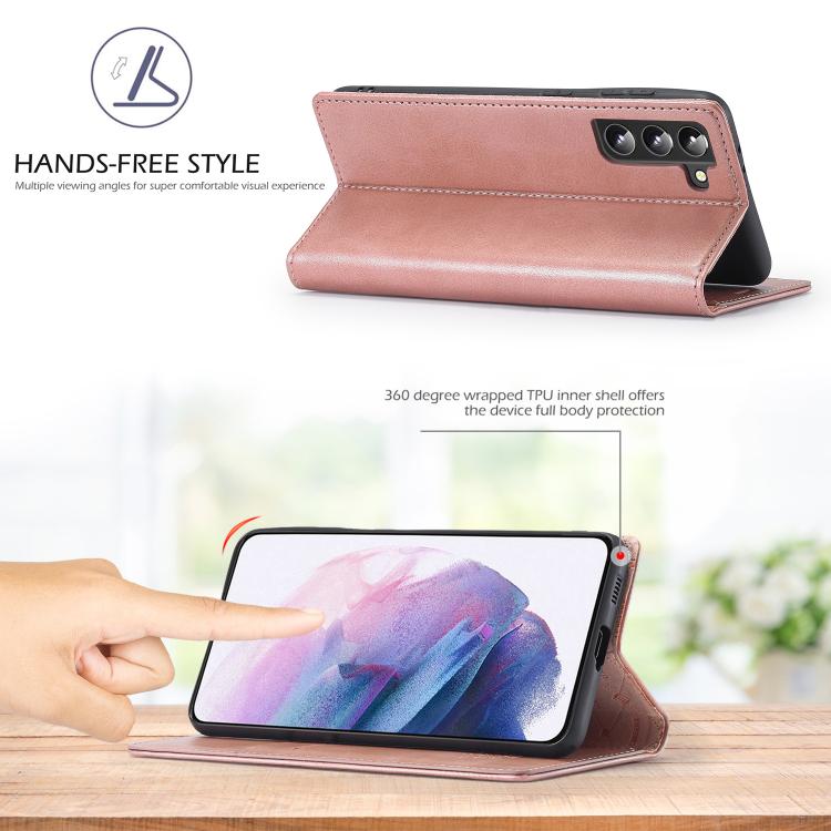 For Samsung Galaxy S22+ 5G LC.IMEEKE Soft PU + TPU Magnetic Skin-friendly Feeling Leather Phone Case(Rose Gold)